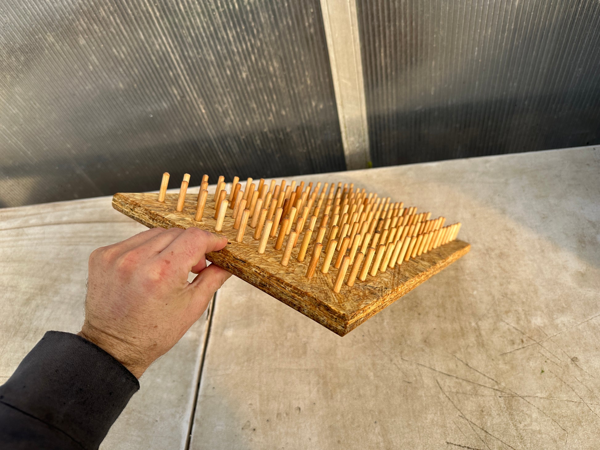 The Plug Popper makes popping out plants simple. Line up your tray, press, and your plugs lift out clean. It’s easy to use, easy to train, and saves real time on transplanting days. It will last many, many years if dried out between each use.